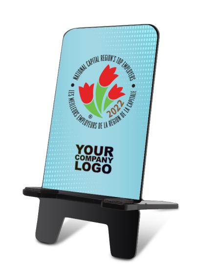 ABS phone stand with anti-slip foam pads to keep phone secure. Great desk item and full colour printing process allows for vibrant logos.