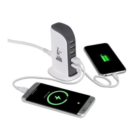 This AC wall adapter has five USB outputs, allowing you to charge multiple USB devices simultaneously.