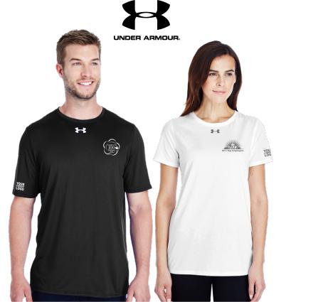 100% polyester. UA Tech™ fabric is quick-drying, ultra-soft & has a more natural feel. Moisture transport system wicks sweat & dries really fast. Anti-odour technology prevents the growth of odour-causing microbes. Four-way stretch fabrication allows greater mobility in any direction. UA logo on top front chest and back. Available in Men’s and Ladies’ sizes.