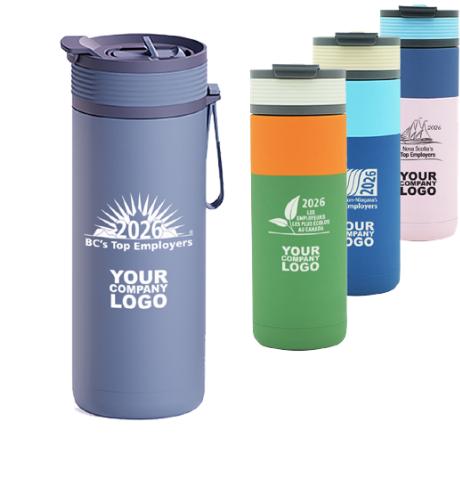 This tumbler is a 2 in 1 insulated, double-walled stainless steel travel companion with a dual-functioning leak-proof lid - featuring a built-in flip up straw for cold drinks, and a flip-open hot sip lid for coffee or tea. This tumbler also features a ceramic coated interior. Gift box included.
