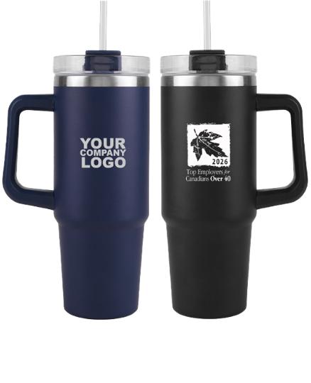 Built with a durable stainless-steel body and a powder-coated finish that leaves a sleek silver rim exposed, this tumbler keeps your brand cool in every way. The custom screw-on acrylic lid includes a convenient rotating tab for both sip access and straw.