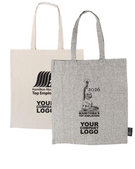 Crafted from a blend of 70% recycled cotton and 30% recycled plastic, this tote redefines sustainable style. This tote is a practical choice for those who appreciate durability and earth-friendly choices. Heathered material pattern for an eco-chic look. Recycled material sewing label on bottom corner. Complies with Global Recycled Standards.